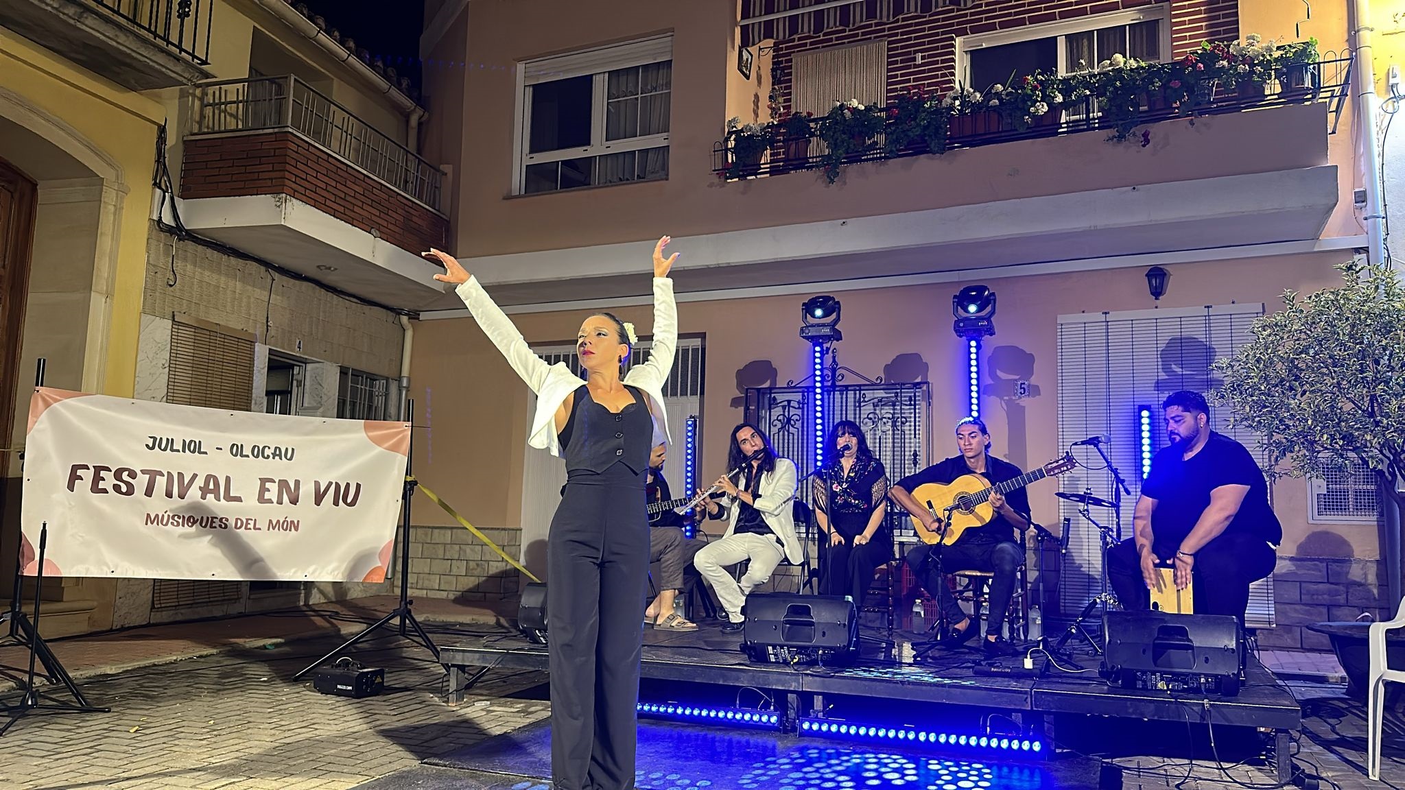 Karlos Nao, con su flauta, nos hizo vibrar, su musica, basada en el estilo de Paco de Lucia dio mucho de si, guitarras , percusión y cante le acompañaban.» – OLOCAUFOTO